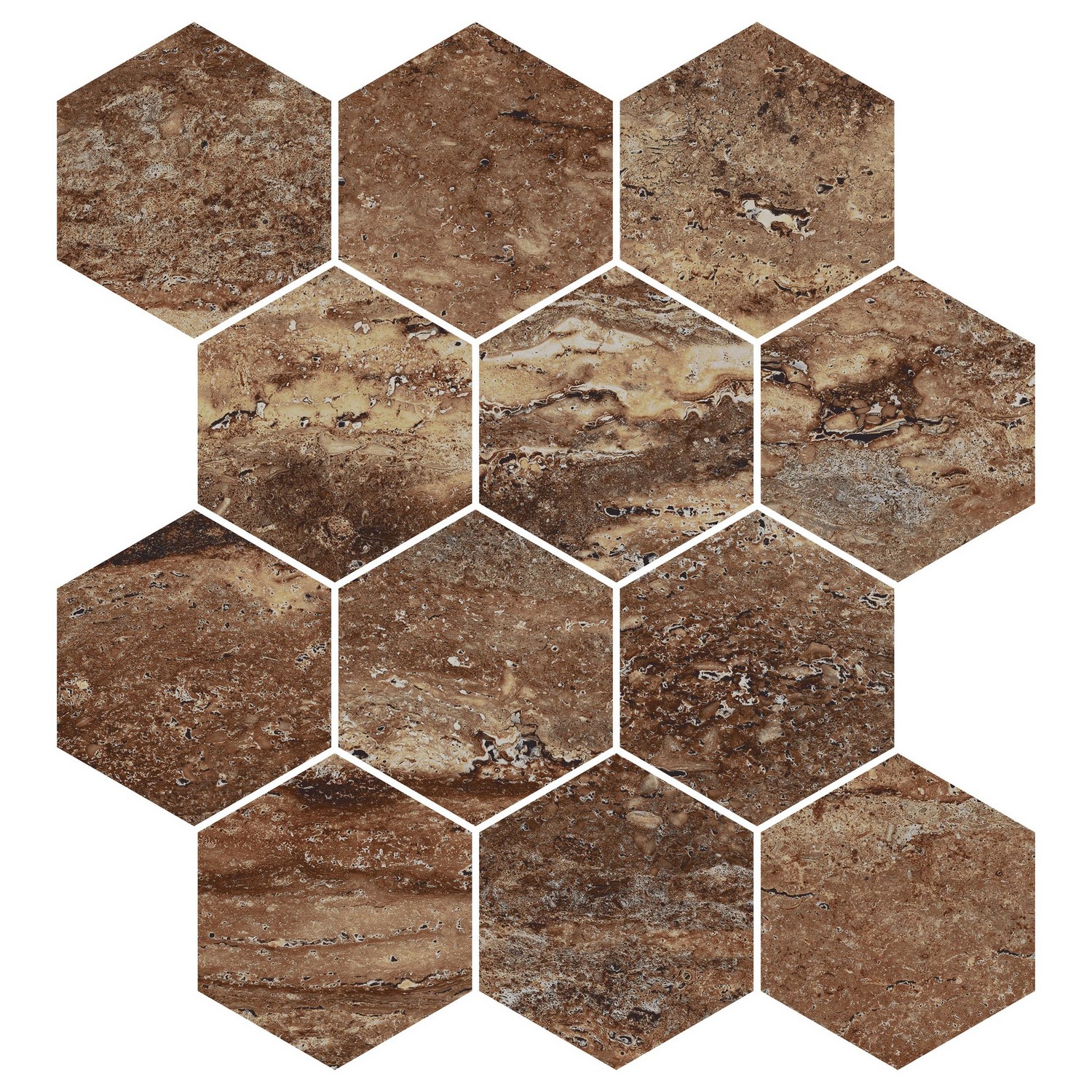 Travertino / Bold / 3" Hex Mosaic / Matte