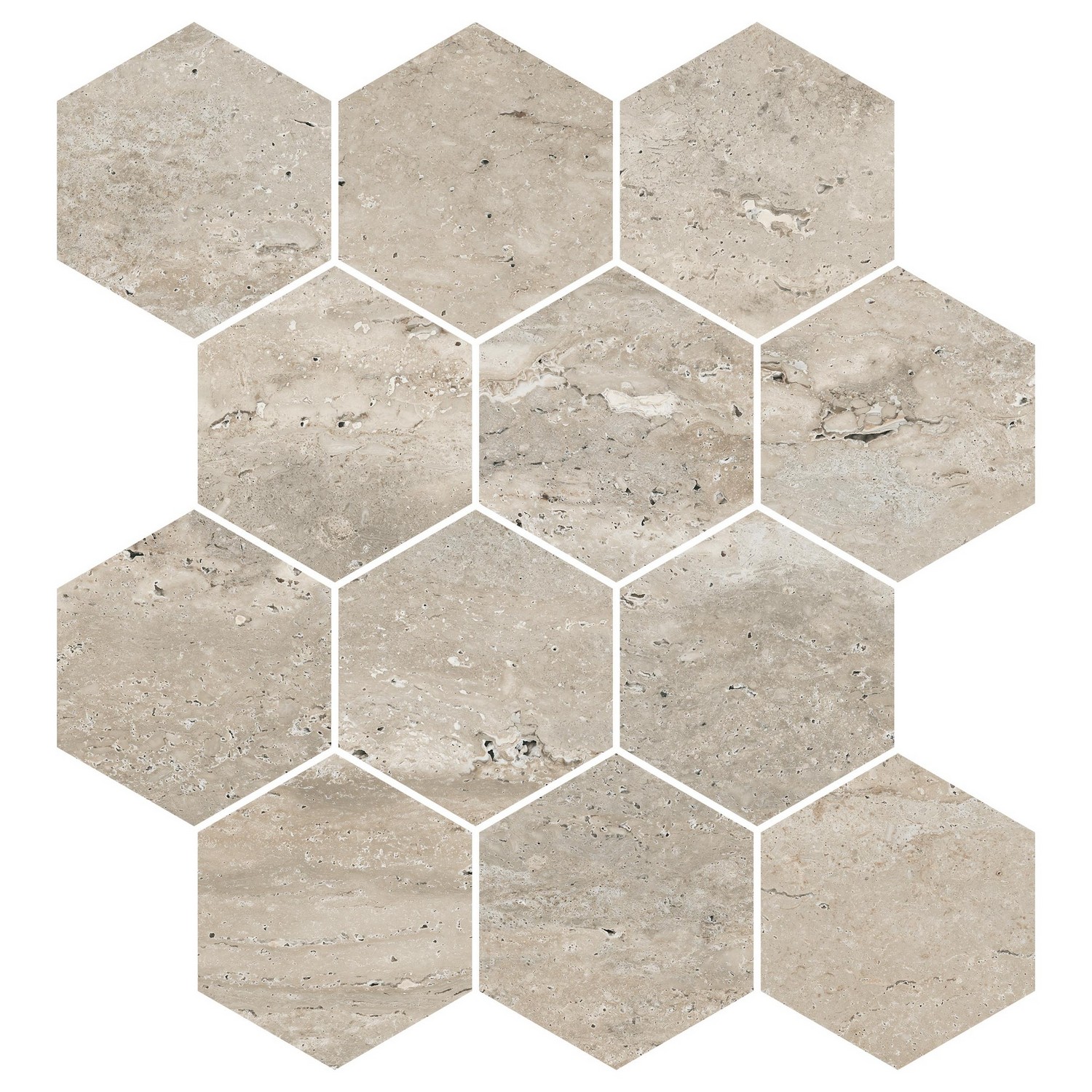 Travertino / Navona / 3" Hex Mosaic / Matte